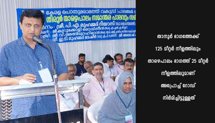 സാങ്കേതികതയില് കുരുങ്ങിയ അപ്രോച്ച് റോഡ് നിര്മാണം വേഗത്തിലാക്കുന്നതിനായി 2021 ജൂലൈ മാസത്തില് പൊതുമരാമത്ത് വകുപ്പ് മന്ത്രി പി.എ മുഹമ്മദ് റിയാസ് സ്ഥലം സന്ദര്ശിച്ച് നിര്ദ്ദേശം നല്കിയിരുന്നു. തുടര്ന്ന് 2022 ഡിസംബര് 31 നാണ് അപ്രോച്ച് റോഡ് നിര്മാണം പൂര്ത്തീകരിച്ചത്. 61 മീറ്റര് നീളവും 11.05 മീറ്റര് വീതിയുമാണ് പാലത്തിനുള്ളത്. താനൂര് ഭാഗത്തേക്ക് 125 മീറ്റര് നീളത്തിലും താഴെപാലം ഭാഗത്ത് 25 മീറ്റര് നീളത്തിലുമാണ് അപ്രോച്ച് റോഡ് നിര്മിച്ചിട്ടുള്ളത്.