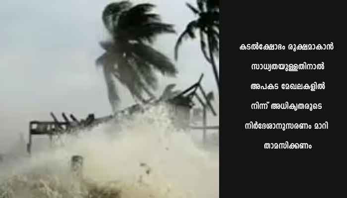 കടൽക്ഷോഭം രൂക്ഷമാകാൻ സാധ്യതയുള്ളതിനാൽ അപകട മേഖലകളിൽ നിന്ന് അധികൃതരുടെ നിർദേശാനുസരണം മാറി താമസിക്കണം. മത്സ്യബന്ധന യാനങ്ങൾ (ബോട്ട്, വള്ളം, മുതലായവ) ഹാർബറിൽ സുരക്ഷിതമായി കെട്ടിയിട്ട് സൂക്ഷിക്കുക. വള്ളങ്ങൾ തമ്മിൽ സുരക്ഷിത അകലം പാലിക്കുന്നത് കൂട്ടിയിടിച്ചുള്ള അപകട സാധ്യത ഒഴിവാക്കാം. മൽസ്യബന്ധന ഉപകരണങ്ങളുടെ സുരക്ഷ ഉറപ്പാക്കണം. ബീച്ചിലേക്കുള്ള യാത്രകളും കടലിൽ ഇറങ്ങിയുള്ള വിനോദങ്ങളും പൂർണ്ണമായും ഒഴിവാക്കുക.