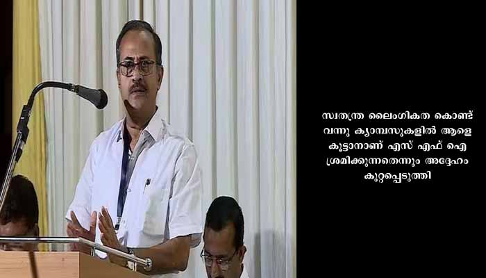 ട്രാൻസ്ജെന്റർ പ്രസവം ആഘോഷിച്ചുവെന്ന് പറഞ്ഞ് മാധ്യമങ്ങളെ അദ്ദേഹം കുറ്റപ്പെടുത്തി. വ്യാജ മാനസിക അവസ്ഥയാണ് ഇത്. ഇതിനെ എതിർത്താൽ പിന്തിരിപ്പൻ ആകും. ഇതാണ് പുരോഗമനം എന്നു പറയുന്നത്. സ്വതന്ത്ര ലൈംഗികത കൊണ്ട് വന്നു ക്യാമ്പസുകളിൽ ആളെ കൂട്ടാനാണ് എസ് എഫ് ഐ ശ്രമിക്കുന്നത്. സംസ്ഥാനത്ത് മയക്കുമരുന്ന് കേസുകളിലും എസ്എഫ്ഐ – ഡിവൈഎഫ്ഐക്കാരാണ് പ്രതികളാകുന്നതെന്നും അദ്ദേഹം കുറ്റപ്പെടുത്തി.