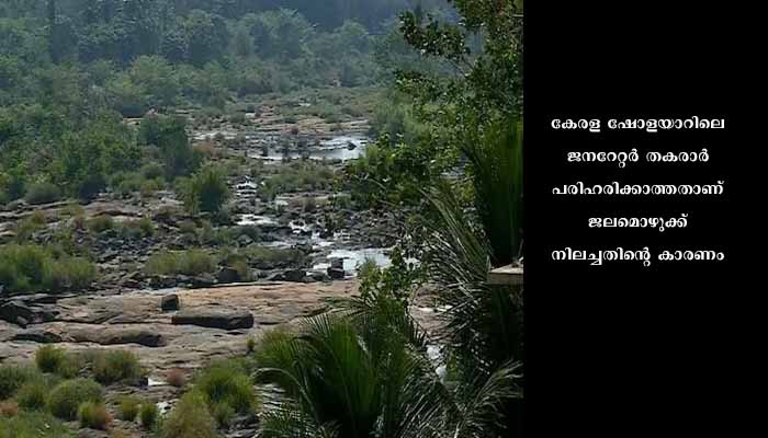 വൈദ്യുതി വകുപ്പാണ് ഇപ്പോഴത്തെ പ്രതിസന്ധിക്ക് ഉത്തരവാദിയെന്നാണ് വ്യക്തമാകുന്നത്. നീരൊഴുക്ക് ക്രമീകരിക്കുന്നതിനുള്ള വെള്ളം കേരളാ ഷോളയാറിലിപ്പോഴുണ്ട്. കേരളാ ഷോളയാറില് നിന്ന് പൊരിങ്ങല് കുത്ത് ഡാമിലേക്ക്, അവിടെ നിന്ന് അതിരപ്പിള്ളി വഴി ചാലക്കുടിപ്പുഴയിലേക്ക്, ഇങ്ങനെയാണ് വെള്ളം വരുന്ന വഴി. ജനറേറ്റര് തകരാറ് വേഗത്തില് പരിഹരിക്കാനായില്ലെങ്കില് വാല്വ് തുറന്ന് നിശ്ചിത അളവ് വെള്ളം ഒഴുക്കിവിടണമെന്നാണ് ആവശ്യം.