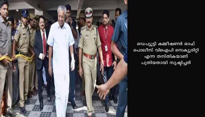 സംസ്ഥാനത്തു ആദ്യമായിട്ടാണ് വിഐപി സുരക്ഷയ്ക്ക് പ്രത്യേക തസ്തിക.