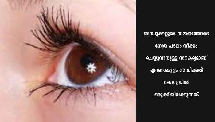 കളമശ്ശേരി : എറണാകുളം സർക്കാർ മെഡിക്കൽ കോളേജും, കടവന്ത്ര ഗിരിധർ കണ്ണാശുപത്രിയിലെ സ്വർണ്ണം ഐ ബാങ്കും സംയുക്തമായി മെഡിക്കൽ കോളേജിൽ നേത്രദാനത്തിനുള്ള സൗകര്യം ഏർപ്പെടുത്തി.നേത്ര പടല അന്ധത സമൂഹത്തിൽ നിന്നും ഇല്ലാതാക്കുന്നതിനു വേണ്ടി മരണം സംഭവിക്കുന്ന രോഗികളിൽ നിന്നും അവരുടെ ബന്ധുക്കളുടെ സമ്മതത്തോടെ  നേത്ര പടലം നീക്കം ചെയ്യുവാനുള്ള സൗകര്യമാണ് എറണാകുളം മെഡിക്കൽ കോളേജിൽ ഒരുക്കിയിരിക്കുന്നത്.