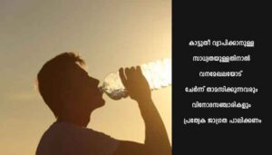 യാത്രയിലേർപ്പെടുന്നവർ ആവശ്യമായ വിശ്രമത്തോടെ യാത്ര തുടരുന്നതാണ് ഉചിതം. കയ്യിൽ വെള്ളം കരുതണം.