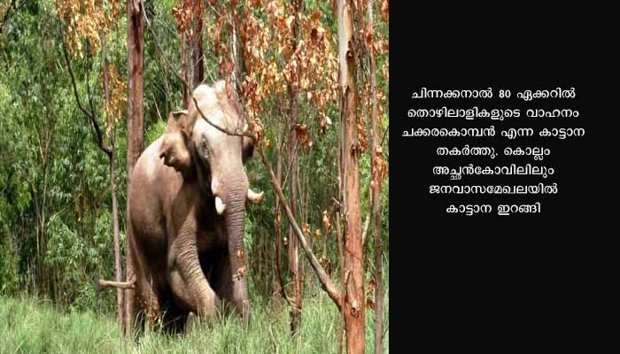 കഴിഞ്ഞ ദിവസം ചിന്നക്കനാൽ പെരിയകനാലിൽ കടയും ദിശാ ബോർഡും അരിക്കൊന്പൻ തകർത്തിരുന്നു. പ്രദേശത്ത് ഭീതി പരത്തുന്ന കാട്ടാനകളെ തുരത്തണമെന്നാണ് നാട്ടുകാരുടെ ആവശ്യം. കൊല്ലം അച്ചൻകോവിൽ കുഴിഭാഗത്ത് പുലർച്ചെ നാലുമണിയോടെയാണ് കാട്ടാന ഇറങ്ങിയത്. ജനവാസ മേഖലയിൽ ഭീതി പരത്തിയ ആനയെ നാട്ടുകാർ ബഹളം വെച്ച് വനത്തിലേക്ക് തുരത്തി.