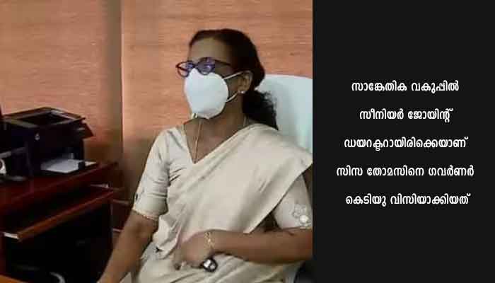 സാങ്കേതിക വകുപ്പിൽ സീനിയർ ജോയിന്റ് ഡയറക്ടറായിരിക്കെയാണ് സിസ തോമസിനെ ഗവർണർ കെടിയു വിസിയാക്കിയത്. നിലവിൽ വിസി സ്ഥാനത്ത് തുടരുന്നതിന് സിസ തോമസിന് തടസ്സമില്ലെങ്കിലും സാങ്കേതിക വിദ്യാഭ്യാസ വകുപ്പിലെ സിസ തോമസിന്റെ പുതിയ നിയമനം തിരുവനന്തപുരം ജില്ലയ്ക്ക് പുറത്താണെങ്കിൽ സാങ്കേതിക പ്രശ്നങ്ങൾ ഉയരാൻ സാധ്യതയുണ്ട്. സർക്കാരിന്റെ പുതിയ നീക്കം, ഗവർണറുമായുള്ള പോരിൽ സർക്കാർ ഒരിഞ്ചും പുറകോട്ടില്ലെന്ന സൂചനയാണ് നൽകുന്നത്.