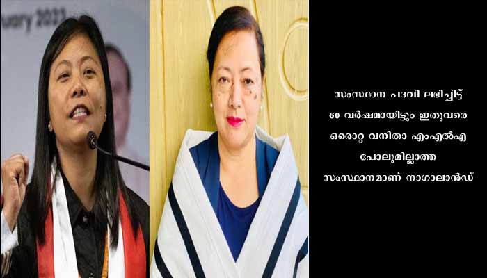 1963ല് സംസ്ഥാന പദവി ലഭിച്ചതിന് ശേഷം 60 അംഗ സഭയിലേക്ക് ഒരു വനിതാ നിയമസഭാംഗത്തെ പോലും നാഗാലാന്ഡ് തെരഞ്ഞെടുത്തിട്ടില്ല. നാഗാലാന്ഡില് എണ്ണത്തിന്റെ കാര്യത്തില് സ്ത്രീകളാണ് മുന്നില്. 6.52 ലക്ഷം പുരുഷന്മാര്ക്ക് 6.55 ലക്ഷം സ്ത്രീകളുണ്ട് സംസ്ഥാനത്ത്. 183 സ്ഥാനാര്ത്ഥികളാണ് നിയമസഭാ തെരഞ്ഞെടുപ്പില് ഇത്തവണ മത്സരിക്കുന്നതെന്നതുകൊണ്ട് തന്നെ സ്ഥാനാര്ത്ഥിത്വം പോലും വനിതകളെ സംബന്ധിച്ച് വളരെ കുറവാണ്.