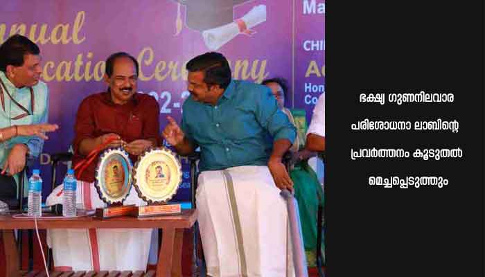 ഭക്ഷ്യ ഗുണനിലവാര പരിശോധനാ ലാബിന്റെ പ്രവര്ത്തനം കൂടുതല് മെച്ചപ്പെടുത്തും. ഇതിനായി 38 ലക്ഷം രൂപ ഇതിനോടകം തന്നെ അനുവദിച്ചിട്ടുണ്ട്. 2023 അന്താരാഷ്ട്ര മില്ലറ്റ് വര്ഷമായി ആണ് ആചരിക്കുന്നത്. ഇതിന് ആവശ്യമായ പ്രചാരണം നല്കും. റാഗിയും മറ്റ് പയര് വര്ഗങ്ങളും മുന്ഗണന വിഭാഗങ്ങള്ക്ക് മാത്രമാണ് ലഭിച്ചുകൊണ്ടിരുന്നത്. എന്നാല്, ഇത് എല്ലാ വിഭാഗങ്ങള്ക്കും ലഭ്യമാക്കുന്നതിനുള്ള പ്രവര്ത്തനങ്ങള് നടന്നുവരുന്നുണ്ടെന്നും മന്ത്രി പറഞ്ഞു. മില്ലറ്റ് ഭക്ഷ്യ മേളയുടെ ഉദ്ഘാടനം, സിഎഫ്റ്റി -കെ ലോഗോ അനാച്ഛാദനം, അക്കാദമിക്ക് അവാര്ഡുകളുടെ വിതരണം എന്നിവ മന്ത്രി നിര്വഹിച്ചു. ബിരുദധാരികളായ വിദ്യാര്ഥികളെ മന്ത്രി ആദരിച്ചു.