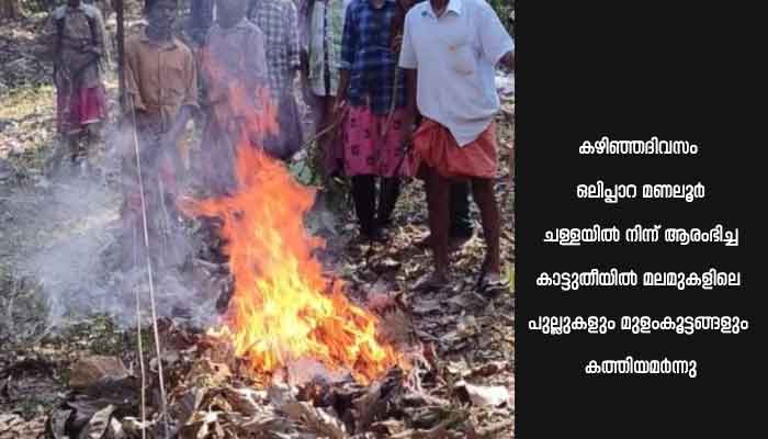 കഴിഞ്ഞദിവസം ഒലിപ്പാറ മണലൂര് ചള്ളയില് നിന്ന് ആരംഭിച്ച കാട്ടുതീയില് മലമുകളിലെ പുല്ലുകളും മുളംകൂട്ടങ്ങളും കത്തിയമര്ന്നു. ഇപ്പോള് താഴ്വാരങ്ങളിലേക്ക് പടര്ന്നുകൊണ്ടിരിക്കുന്നതിനാല് നിയന്ത്രിക്കാനാകുമെന്നും നിലവിലുള്ള ഫയര് ലൈനുകള് തീ അണക്കാന് സഹായിക്കുന്നുണ്ടെന്നും ജീവനക്കാര് പറഞ്ഞു. വൈകീട്ടോടെ കാട്ടുതീ പൂഞ്ചേരി, ചള്ള, ഓവുപാറ മേഖലകളിലേക്ക് നാല് കിലോമീറ്ററോളം ദൂരത്തില് പടര്ന്നുകയറി. നെല്ലിയാമ്പതിയില് ഗോവിന്ദമല ഭാഗത്തുനിന്ന് പടര്ന്ന കാട്ടുതീ സീതാര്കുണ്ട് വ്യൂപോയിന്റിന് സമീപത്തെ എസ്റ്റേറ്റുകള്ക്ക് അടുത്ത് എത്തി. സീതാര്കുണ്ട് ഭാഗത്തെ പുല്മേടുകളും കുത്തനെയുള്ള മലഞ്ചെരുവുകളും കാട്ടുതീയില് അകപ്പെട്ടു.