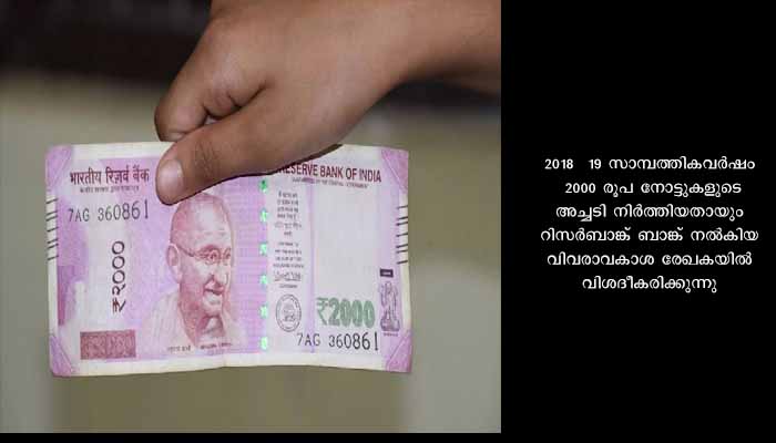 ന്യൂഡൽഹി: രാജ്യത്ത് 2000 രൂപ നോട്ടുകൾ നിലവിൽ അച്ചടിക്കുന്നില്ലെന്ന് റിസർവ് ബാങ്ക് ഓഫ് ഇന്ത്യ. 2018 – 19 സാമ്പത്തികവർഷം 2000 രൂപ നോട്ടുകളുടെ അച്ചടി നിർത്തിയതായും റിസർബാങ്ക് ബാങ്ക് നൽകിയ വിവരാവകാശ രേഖകയിൽ വിശദീകരിക്കുന്നു.