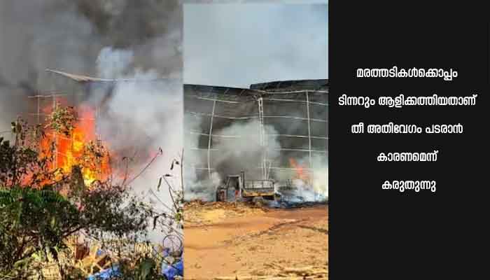മലപ്പുറം: മലപ്പുറം മമ്പാട് ടാണയിൽ ഫർണിച്ചർ ശാലയിൽ ഉണ്ടായ വൻ അഗ്നിബാധയിൽ ഒരു കോടിയിലേറെ രൂപയുടെ നഷ്ടം. പ്രൈമർ മെഷിനിൽ നിന്നുള്ള ഷോട്ട് സർക്യൂട്ടാണ് തീ പിടുത്തത്തിന് കാരണമെന്നാണ് നിഗമനം. 2023 മാർച്ച് 8 ബുധനാഴ്ച വൈകുന്നേരം മൂന്നരയോടെയാണ് സംഭവം.