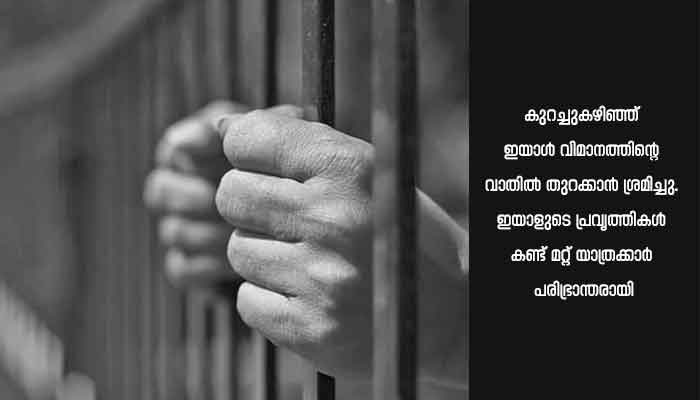 പ്രതി വിമാനത്തിന്റെ ശൗചാലയത്തില്‍ പോയതുമുതല്‍ ഫയര്‍ അലാം ശബ്ദിക്കാന്‍ തുടങ്ങി. ഇതുകേട്ട് വിമാനത്തിലെ ജീവനക്കാര്‍ ശൗചാലയത്തിന് അടുത്തേക്ക് പോയപ്പോള്‍, കൈയില്‍ സിഗരറ്റുമായി നില്‍ക്കുന്ന രമാകാന്തിനെയാണ് കണ്ടത്. ഇയാളുടെ കൈയില്‍ നിന്ന് സിഗരറ്റ് പിടിച്ചുവാങ്ങി. ഇതില്‍ ദേഷ്യപ്പെട്ട് ഇയാള്‍ ജീവനക്കാരോട് മുഴുവന്‍ ആക്രോശിക്കാന്‍ ആരംഭിച്ചു. ഒരുവിധത്തില്‍ ഇയാളെ സീറ്റില്‍ എത്തിച്ചു. കുറച്ചുകഴിഞ്ഞ് ഇയാള്‍ വിമാനത്തിന്റെ വാതില്‍ തുറക്കാന്‍ ശ്രമിച്ചു. ഇയാളുടെ പ്രവൃത്തികള്‍ കണ്ട് മറ്റ് യാത്രക്കാര്‍ പരിഭ്രാന്തരായി. ഞങ്ങളുടെ നിര്‍ദ്ദേശങ്ങള്‍ കേള്‍ക്കാന്‍ തയ്യാറാവാതെ ആക്രോശിക്കുന്നത് തുടര്‍ന്നു. കൈകാലുകള്‍ കെട്ടിയാണ് പിന്നീട് സീറ്റിലിരുത്തിയത്’, വിമാന ജീവനക്കാരില്‍ ഒരാള്‍ പറഞ്ഞു. എന്നിട്ടും അടങ്ങാതിരുന്ന ഇയാള്‍, തലയിട്ടടിക്കാന്‍ തുടങ്ങി. യാത്രക്കാരിലൊരാള്‍ ഡോക്ടറായിരുന്നു. അദ്ദേഹം വന്ന് രമാകാന്തിനെ പരിശോധിച്ചു. ഈ സമയത്ത്, തന്റെ ബാഗില്‍ ഏതാനും മരുന്നുകളുണ്ടെന്ന് രമാകാന്ത് പറഞ്ഞു. അതിനായി പരിശോധനടത്തിയെങ്കിലും ഒന്നും കണ്ടെത്താന്‍ സാധിച്ചില്ല. പകരം ഒരു ഇ- സിഗരറ്റായിരുന്നു കണ്ടെടുക്കാന്‍ സാധിച്ചത്’, പോലീസ് വിശദീകരിച്ചു.