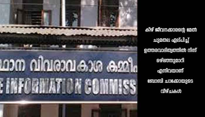 കൊണ്ടോട്ടി നഗരസഭയിൽ ബോബി ചാക്കോ പ്രവർത്തിച്ച 2022 ഏപ്രിലിൽ ചെറുവാടി ലക്ഷ്മി നല്കിയ അപേക്ഷക്ക് വിവരം നല്കിയില്ല, കീഴ് ജീവനക്കാരന്റെ മേൽ ചുമതല ഏല്പിച്ച് ഉത്തരവാദിത്വത്തിൽ നിന്ന് ഒഴിഞ്ഞുമാറി എന്നിവയാണ് ഇദ്ദേഹത്തിന്റെ വീഴ്ചകൾ. ഒന്നാം അപ്പീൽ അധികാരിയുടെ നടപടികൾ കമ്മിഷൻ ശരിവച്ചിട്ടുമുണ്ട്. ഇരുവരും ഏപ്രിൽ 13 നകം പിഴയൊടുക്കി ചലാൻ കമ്മിഷന് സമർപ്പിക്കണം.