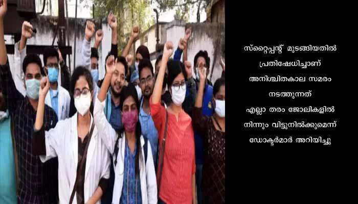 രോഗികൾക്കും ജീവനക്കാർക്കും ബുദ്ധിമുട്ട് ഉണ്ടാവാതിരിക്കാനാണ് തങ്ങൾ ഇതുവരെ സമരത്തിലേക്ക് പോകാതിരുന്നതെന്ന് കേരള മെഡിക്കൽ പിജി അസോസിയേഷൻ പറഞ്ഞു. സ്റ്റൈപ്പന്റില്ലാതെ ജോലി തുടർന്നിട്ടും സ്റ്റൈപ്പന്റിന് പണം അനുവദിക്കാൻ സർക്കാർ തയ്യാറായില്ല. പല തവണ സർക്കാരിലേക്ക് അപേക്ഷ നൽകിയിട്ടും നടപടിയുണ്ടായില്ലെന്നും ഭാരവാഹികൾ കുറ്റപ്പെടുത്തുന്നു.