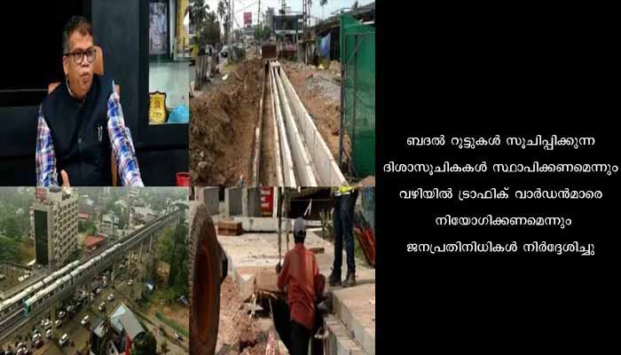 കൊച്ചി: കൊച്ചി മെട്രോ രണ്ടാം ഘട്ട നിർമാണ പ്രവർത്തനങ്ങൾക്ക് മുന്നോടിയായി കെഎംആർഎൽ ജനപ്രതിനിധികളുമായി അവലോകന യോഗം ചേർന്നു. മെട്രോ അലൈൻമെന്റ് വരുന്ന റൂട്ടിൽ ഗതാഗത കുരുക്ക് ഒഴിവാക്കാൻ ബദൽ റൂട്ടുകൾ നിശ്ചയിക്കുന്നതിനായിരുന്നു യോഗം. മെട്രോ ഉദ്യോഗസ്ഥരും വിവിധ വകുപ്പ് ഉദ്യോഗസ്ഥരും ചേർന്ന് തയ്യാറാക്കിയ ബദൽ റൂട്ടുകളുടെ പട്ടിക ജനപ്രതിനിധികൾക്ക് കൈമാറി. ബദൽ റൂട്ടുകൾ സൂചിപ്പിക്കുന്ന ദിശാസൂചികകൾ സ്ഥാപിക്കണമെന്നും വഴിയിൽ ട്രാഫിക് വാർഡൻമാരെ നിയോഗിക്കണമെന്നും ജനപ്രതിനിധികൾ നിർദ്ദേശിച്ചു.
