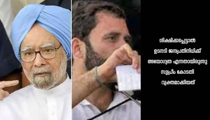 ക്രിമിനൽ കേസിലടക്കം ശിക്ഷിക്കപ്പെട്ടാൽ ജനപ്രതിനിധികളുടെ അംഗത്വം, അപ്പീൽ കാലയളവായ 3 മാസത്തേക്ക് റദ്ദാക്കാനാകില്ല എന്ന ജനപ്രാതിനിധ്യ നിയമത്തിലെ എട്ട് (4) വകുപ്പിലായിരുന്നു സുപ്രീം കോടതി ഇടപെട്ടത്. 2013 ജൂലൈ പത്തിന് സുപ്രീം കോടതി ഇത് അസാധുവാക്കി. ശിക്ഷിക്കപ്പെട്ടാൽ ഉടനടി ജനപ്രതിനിധിക്ക് അയോഗ്യത എന്നതായിരുന്നു സുപ്രീം കോടതി വ്യക്തമാക്കിയത്. എന്നാൽ രണ്ട് മാസത്തിനകം യു പി എ സർക്കാർ ഓർഡിനൻസ് കൊണ്ടുവന്നു. കാലിത്തീറ്റ കുംഭകോണക്കേസിൽ ലാലു പ്രസാദ് യാദവ് ഉൾപ്പെടെയുള്ളവരുടെ വിധി വരുന്നതിനു തൊട്ടു മുമ്പായിരുന്നു മൻമോഹൻ സർക്കാരിന്റെ ഓർഡിനൻസ്. എന്നാൽ ഈ ഓർഡിനൻസിനെ രൂക്ഷമായി വിമർശിച്ച രാഹുൽ ദില്ലി പ്രസ് ക്ലബിൽ വച്ച് ഓർഡിനൻസ് പരസ്യമായി കീറിയെറിയുകയും ചെയ്തു. രാഹുലിന്റെ നടപടി വിവാദത്തിനും വിമർശനത്തിനും ഇടയാക്കിയെങ്കിലും യു പി എ സർക്കാർ ഓർഡിനൻസ് പിൻവലിക്കുകയായിരുന്നു. പത്ത് വർഷത്തിനിപ്പുറം രാഹുൽ ഗാന്ധി തന്നെ ക്രിമിനൽ മാനനഷ്ടക്കേസിൽ രണ്ട് വർഷം ശിക്ഷിക്കപ്പെട്ട് അയോഗ്യത ഭീഷണി നേരിടുമ്പോൾ കോൺഗ്രസ് നേതാക്കളിൽ പലരും ആ ഓർഡിനൻസ് ഉണ്ടായിരുന്നെങ്കിൽ എന്ന് ആഗ്രഹിച്ചുപോയേക്കും.