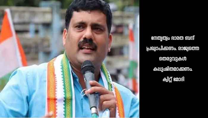 ‘ഇതൊരു അന്തിമ പോരാട്ടമാണ്. പ്രവൃത്തിക്കുക അല്ലെങ്കിൽ മരിക്കുക. ഇതിനപ്പുറം മറ്റെന്ത് വരാൻ. നേതൃത്വം ഭാരത ബന്ദ് പ്രഖ്യാപിക്കണം. രാജ്യത്തെ തെരുവുകൾ കലുഷിതമാക്കണം. ക്വിറ്റ് മോദി’ എന്നായിരുന്നു റിജിൽ മാക്കുറ്റിയുടെ ഫേസ്ബുക്ക് പോസ്റ്റ്.