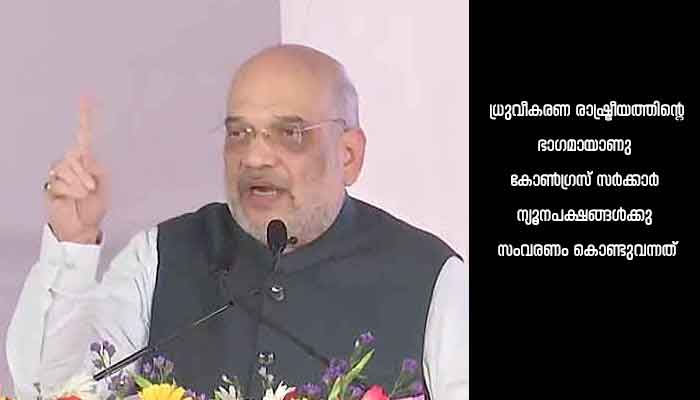 നിയമസഭാ തെരഞ്ഞെടുപ്പ് ആസന്നമായ കര്ണാടകയില് സംവരണ വിഷയം ഉയര്ത്തി ബി.ജെ.പി. മതത്തിന്റെ അടിസ്ഥാനത്തില് സംവരണം നല്കാന് വ്യവസ്ഥയില്ലെന്നു കേന്ദ്ര ആഭ്യന്തര മന്ത്രി അമിത് ഷാ കര്ണാടകയില് നടന്ന പൊതുസമ്മേളനത്തില് വ്യക്തമാക്കി. മുസ്ലിം വിഭാഗത്തിനുള്ള 4% ഒബിസി സംവരണം എടുത്തുകളയാന് കഴിഞ്ഞ ദിവസം കര്ണാടക സര്ക്കാര് തീരുമാനിച്ചതിനു പിന്നാലെയാണ് അമിത് ഷായുടെ പ്രസ്താവന. സംവരണം ഏര്പ്പെടുത്തിയ കോണ്ഗ്രസിനെ ഷാ വിമര്ശിക്കുകയും ചെയ്തു. കര്ണാടകയിലെ ബിദറില് നടന്ന പൊതുസമ്മേളനത്തില് പ്രസംഗിക്കുകയായിരുന്നു അദ്ദേഹം.