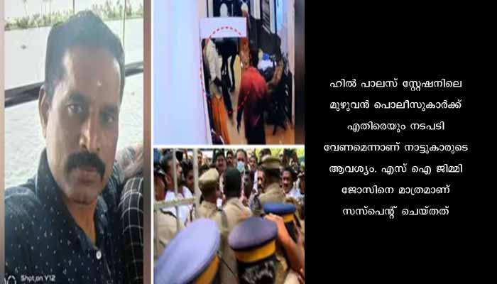 കൊച്ചി: തൃപ്പൂണിത്തുറ കസ്റ്റഡി മരണത്തിൽ ജില്ലാ ക്രൈംബ്രാഞ്ച് 27/03/23 തിങ്കളാഴ്ച പ്രാഥമിക റിപ്പോർട്ട് നൽകിയേക്കും. ഇതിനിടെ മനോഹരൻ സ്റ്റേഷനിൽ കുഴഞ്ഞ് വീഴുന്ന ദൃശ്യങ്ങൾ പുറത്തുവന്നു. ഇതോടെ പൊലീസിനെതിരെ പ്രതിഷേധം ശക്തമാക്കി നാട്ടുകാർ രംഗത്തെത്തി. ഹിൽ പാലസ് സ്റ്റേഷനിലെ മുഴുവൻ പൊലീസുകാർക്ക് എതിരെയും നടപടി വേണമെന്നാണ് നാട്ടുകാരുടെ ആവശ്യം. എസ് ഐ ജിമ്മി ജോസിനെ മാത്രമാണ് സസ്പെന്റ് ചെയ്തത്. 26/03/23 ഞായറാഴ്ച രാത്രി മൃതദേഹം തൃപ്പുണ്ണിത്തുറ പൊതു ശ്മശാനത്തിൽ സംസ്കരിച്ചിരുന്നു.