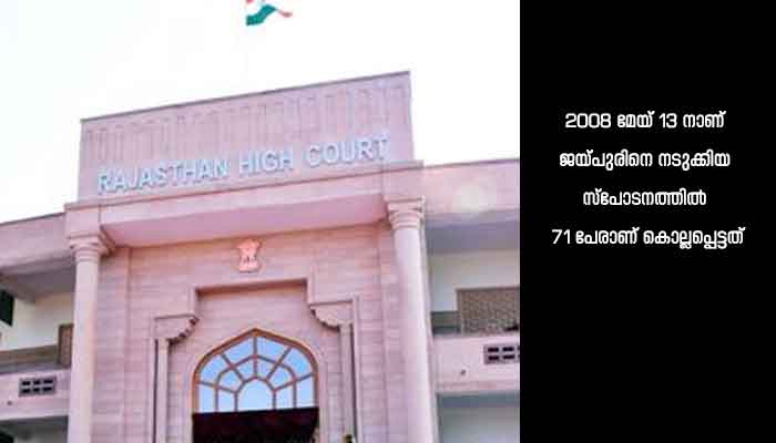 ജയ്പുർ: രാജസ്ഥാനിലെ ജയ്പുരിൽ 71 പേർ കൊല്ലപ്പെടുകയും 185 പേർക്കു പരുക്കേൽക്കുകയും ചെയ്ത സ്ഫോടനപരമ്പരയുമായി ബന്ധപ്പെട്ട് വധശിക്ഷ വിധിക്കപ്പെട്ട നാലു യുവാക്കളെയും കുറ്റവിമുക്തരാക്കി ഹൈക്കോടതി. സർവാർ ആസ്മി, മുഹമ്മദ്, സെയ്ഫ്, സെയ്ഫുർ റഹ്മാൻ, സൽമാൻ എന്നിവരെയാണ് രാജസ്ഥാൻ ഹൈക്കോടതി കുറ്റവിമുക്തരാക്കിയത്. കീഴ്ക്കോടതി വധശിക്ഷയ്ക്കു വിധിച്ചവരാണിവർ. 2008 മേയ് 13 നാണ് ജയ്പുരിനെ നടുക്കിയ സ്പോടനത്തിൽ 71 പേരാണ് കൊല്ലപ്പെട്ടത്.