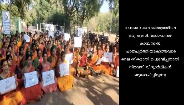 ചെന്നൈ കലാക്ഷേത്രയിലെ ഒരു അസി. പ്രൊഫസര്‍ കാമ്പസില്‍ പ്രായപൂര്‍ത്തിയാകാത്തവരെ ലൈംഗികമായി ഉപദ്രവിച്ചതായി നിരവധി വിദ്യാര്‍ഥികള്‍ ആരോപിച്ചിരുന്നു.30/03/23 വ്യാഴാഴ്ച രാവിലെ വിദ്യാര്‍ഥികള്‍ പ്രഭാത പ്രാര്‍ഥനയില്‍നിന്ന് ഇറങ്ങിപ്പോയി. ആരോപണം നേരിടുന്ന ഫാക്കല്‍റ്റി അംഗത്തിനെതിരേ നടപടിയെടുക്കണമെന്ന് അവര്‍ ആവശ്യപ്പെട്ടു. വര്‍ഷാവസാന പരീക്ഷകള്‍ ഒഴിവാക്കുന്ന വിദ്യാര്‍ഥികള്‍ പ്രൊഫസറെയും മറ്റ് മൂന്ന് നൃത്താധ്യാപകരെയും ഉടന്‍ സസ്‌പെന്‍ഡ് ചെയ്യണമെന്ന് ആവശ്യപ്പെട്ടിരിക്കുകയാണ്. വിദ്യാര്‍ഥി പ്രതിഷേധം ശ്രദ്ധയില്‍പ്പെട്ടതോടെ കലക്ടറോട് വിവരം തിരക്കി. ഉദ്യോഗസ്ഥരെ അന്വേഷണത്തിന് അയയ്ക്കുകയും ചെയ്തതായി സ്റ്റാലിന്‍ നിയമസഭയില്‍ പറഞ്ഞു.