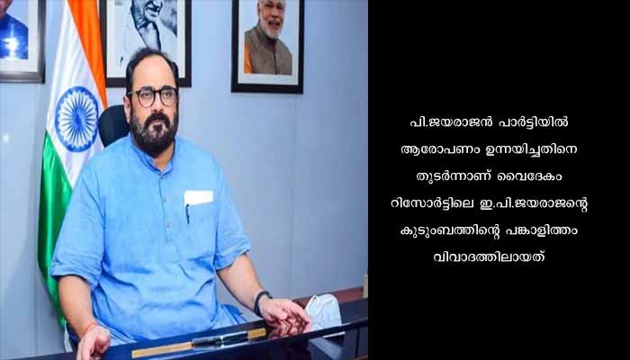 പി.ജയരാജൻ പാർട്ടിയിൽ ആരോപണം ഉന്നയിച്ചതിനെ തുടർന്നാണ് വൈദേകം റിസോർട്ടിലെ ഇ.പി.ജയരാജന്റെ കുടുംബത്തിന്റെ പങ്കാളിത്തം വിവാദത്തിലായത്. ഇതോടെ ഓഹരികൾ വിറ്റൊഴിയാൻ തീരുമാനിച്ചിരുന്നു. ഇതിനു പിന്നാലെയാണ് രാജീവ് ചന്ദ്രശേഖർ ഏറ്റെടുക്കുന്നുവെന്ന് വാർത്ത വന്നത്.