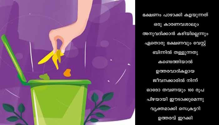 ഭക്ഷണം പാഴാക്കി കളയുന്ന നഗരസഭ ജീവനക്കാർക്കു താക്കീതുമായി സെക്രട്ടറി കെ.കെ.മനോജ്