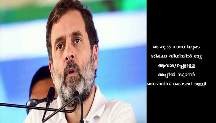 സൂറത്ത്: രാഹുൽ ഗാന്ധിയുടെ ശിക്ഷാ വിധിയിൽ സ്റ്റേ ആവശ്യപ്പെട്ടുള്ള അപ്പീൽ സൂറത്ത് സെഷൻസ് കോടതി തള്ളി. ഇതോടെ രാഹുൽ ഗാന്ധിയ്ക്ക് എം പി സ്ഥാനത്തിനുള്ള അയോഗ്യത തുടരും. സ്‌റ്റേ നേടുന്നതിനായി രാഹുൽ 2023 ഏപ്രിൽ 21ന് ഗുജറാത്ത് ഹൈക്കോടതിയെ സമീപിക്കുമെന്നാണ് വിവരം. മൂന്ന് ദിവസത്തിനുള്ളിൽ സ്‌റ്റേ സമ്പാദിക്കുക എന്നത് രാഹുലിനെ സംബന്ധിച്ച് ഏറെ നിർണായകമാണ്.