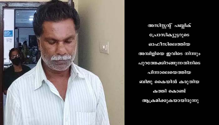 കുടുംബപ്രശ്‌നങ്ങളെത്തുടര്‍ന്ന് ഇരുവരും പിരിഞ്ഞാണ് താമസിച്ചിരുന്നത്. അസിസ്റ്റന്റ് പബ്ലിക് പ്രോസിക്യൂട്ടറുടെ ഓഫീസിലെത്തിയ അമ്പിളിയെ ഇവിടെ നിന്നും പുറത്തേക്കിറങ്ങുന്നതിനിടെ പിന്നാലെയെത്തിയ ബിജു കൈയില്‍ കരുതിയ കത്തി കൊണ്ട് ആക്രമിക്കുകയായിരുന്നു.