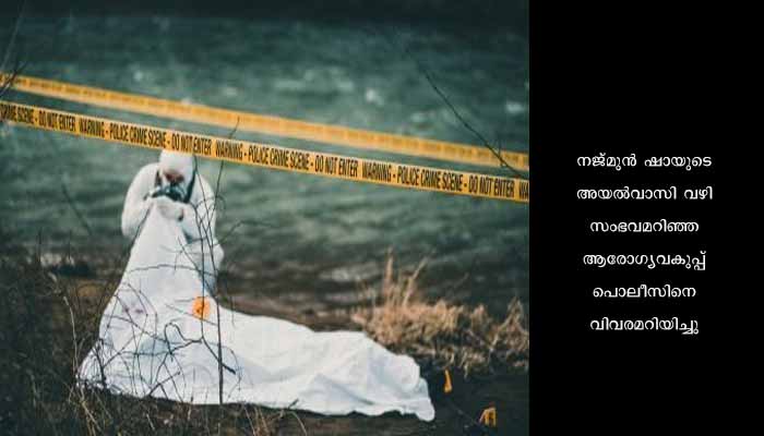 നജ്മുൻ ഷായുടെ അയൽവാസി വഴി സംഭവമറിഞ്ഞ ആരോഗ്യവകുപ്പ് പൊലീസിനെ വിവരമറിയിച്ചു. എഎസ്പി നകുൽ രാജേന്ദ്ര ദേശ്മുഖിന്റെ നേതൃത്വത്തിൽ പൊലീസ് സംഘം സ്ഥലത്തെത്തി. പാലാ ആർഡിഒയുടെ സാന്നിധ്യത്തിൽ മൃതദേഹം 2023 ഏപ്രിൽ 21 ന് പുറത്തെടുത്തു പരിശോധിക്കും. അസ്വാഭാവിക മരണത്തിനു പൊലീസ് കേസെടുത്തു. ഐഷാബീവിയെ വൈക്കം താലൂക്കാശുപത്രിയിൽ പ്രവേശിപ്പിച്ചു.