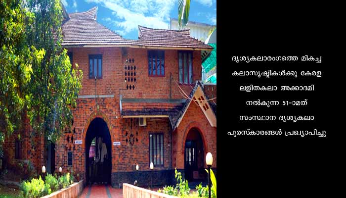 കൊച്ചി: ദൃശ്യകലാരംഗത്തെ മികച്ച കലാസൃഷ്ടികള്ക്കു കേരള ലളിതകലാ അക്കാദമി നല്കുന്ന 51-ാമത് സംസ്ഥാന ദൃശ്യകലാപുരസ്കാരങ്ങള് പ്രഖ്യാപിച്ചു. സംസ്ഥാന പുരസ്കാരം നേടിയവര്: അമീന് ഖലീല്, പ്രകാശന് കെ.എസ്, ഷാന് കെ.ആര്., ശ്രീജ പി.ബി. (ശ്രീജ പള്ളം), ശ്രീനാഥ് കെ.എസ്, അനു ജോണ് ഡേവിഡ്, ഉണ്ണികൃഷ്ണന് കെ. 50,000 രൂപയും ബഹുമതി പത്രവും സ്മരണികയുമാണ് പുരസ്കാരം. ഓണറബിള് മെന്ഷന് പുരസ്ക്കാരം: അമ്മു എസ്., ഹെല്ന ജോസഫ് മിബിന്, മുഹമ്മദ് യാസിര്, റോബര്ട്ട് വി.ജെ., ഡി. മനോജ്, മധുസൂദനന് കെ.ബി., ശിവകുമാര് കെ.എം. 25,000 രൂപയും ബഹുമതിപത്രവുമാണ് സമ്മാനം.വി. ശങ്കരമേനോന് എന്ഡോവ്മെന്റ് സ്വര്ണ മെഡല് എം. എച്ച്. സഹറാബിക്കും വിജയരാഘവന് എന്ഡോവ്മെന്റ് സ്വര്ണ മെഡല് കെ.എന്. വിനോദ് കുമാറിനും ലഭിച്ചു.