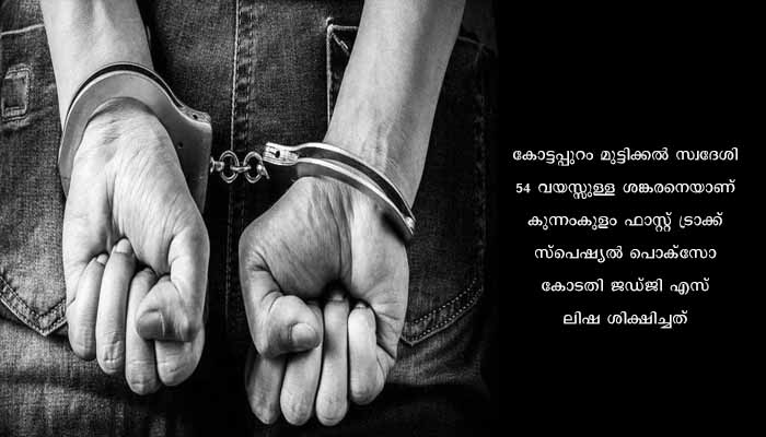 തൃശൂർ : തൃശൂർ കുന്നംകുളത്ത് പെൺകുട്ടിക്ക് നേരെ ലൈംഗികാതിക്രമം നടത്തിയ കേസിൽ പ്രതിക്ക് ആറ് വർഷം കഠിനതടവും 15000 രൂപ പിഴയും ശിക്ഷ. കോട്ടപ്പുറം മുട്ടിക്കൽ സ്വദേശി 54 വയസ്സുള്ള ശങ്കരനെയാണ് കുന്നംകുളം ഫാസ്റ്റ് ട്രാക്ക് സ്പെഷ്യൽ പൊക്സോ കോടതി ജഡ്ജി എസ് ലിഷ ശിക്ഷിച്ചത്. 2017 നവംബറിൽ ആണ് കേസിനാസ്പദമായ സംഭവം. വടക്കാഞ്ചേരി കുന്നംകുളം റൂട്ടിൽ സർവീസ് നടത്തുന്ന ബസ്സിൽ അമ്മയോടൊപ്പം യാത്ര ചെയ്യുകയായിരുന്ന പെൺകുട്ടിക്ക് നേരെ ശങ്കരൻ ലൈംഗികാതിക്രമം നടത്തുകയായിരുന്നു.