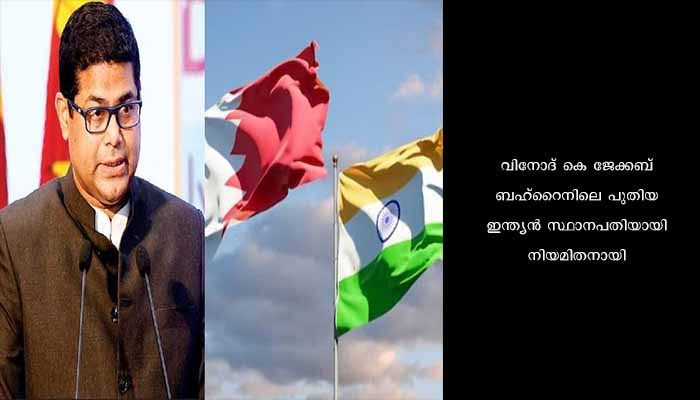 ന്യൂ ഡൽഹി : വിനോദ് കെ ജേക്കബ് ബഹ്റൈനിലെ പുതിയ ഇന്ത്യൻ സ്ഥാനപതിയായി നിയമിതനായി. നിലവിലെ അംബാസഡർ പിയൂഷ് ശ്രീവാസ്തവയുടെ കാലാവധി പൂർത്തിയായതിനെത്തുടർന്നാണ് നിയമനം. ശ്രീലങ്കയിലെ ഇന്ത്യൻ ഹൈക്കമ്മിഷനിൽ ഡെപ്യൂട്ടി ഹൈ കമ്മീഷണറാണ് വിനോദ് കെ ജേക്കബ്. 2000ൽ ഇന്ത്യൻ ഫോറിൻ സർവീസിൽ ചേർന്ന വിനോദ്, ഹോങ്കോങ്, ഷാങ്ഹായ്, ജനീവ എന്നിവിടങ്ങളിലെ ഇന്ത്യൻ മിഷനുകളിൽ സേവനമനുഷ്ഠിച്ചിട്ടുണ്ട്.