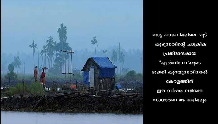 നിലവിലെ സാഹചര്യത്തില്‍ ഈ മാസം 22 ഓടെ മണ്‍സൂണ്‍ ആന്‍ഡമാന്‍ നിക്കോബര്‍ ദ്വീപുകളിലെത്തുകയും തുടര്‍ന്ന് ജൂണ്‍ ആരംഭത്തില്‍ തന്നെ മഴ ലഭിക്കാനുമുള്ള സാധ്യതയാണ് തെളിയുന്നത്. ജൂണ്‍ അഞ്ചിനുള്ളില്‍ കാലവര്‍ഷം ശക്തിപ്രാപിക്കും. മധ്യ പസഫിക്കിലെ ചൂട് കൂടുന്നതിന്റെ ചാക്രിക പ്രതിഭാസമായ ”എല്‍നിനോ’യുടെ ശക്തി കുറയുന്നതിനാല്‍ കേരളത്തിന് ഈ വര്‍ഷം ലഭിക്കേണ്ട സാധാരണ മഴ ലഭിക്കും. സംസ്ഥാനത്ത് ജൂണ്‍, ജൂലൈ മാസങ്ങളിലാണ് കൂടുതല്‍ മഴ ലഭിക്കുന്നത്. എന്നാല്‍ കഴിഞ്ഞ രണ്ട് വര്‍ഷങ്ങളിലായി ജൂണ്‍, ജൂലൈ മാസങ്ങളില്‍ മഴ കുറഞ്ഞ് ആഗസ്റ്റില്‍ കൂടുതല്‍ ലഭിച്ചിരുന്നു. എന്നാല്‍ ഇത്തവണ ജൂണ്‍, ജൂലൈ മാസങ്ങളില്‍ എല്‍നിനോ പ്രഭാവം കുറയുന്നതിനാല്‍ ഇത്തവണ കൂടുതല്‍ മഴ ലഭിക്കുമെന്നാണ് സൂചനയെന്ന് ഐ എം ഡി അധികൃതര്‍ വ്യക്തമാക്കി. ആഗസ്റ്റ്, സെപ്തംബര്‍ മാസങ്ങളില്‍ മഴക്കുറവും അനുഭവപ്പെടും.നിലവില്‍ സംസ്ഥാനത്ത് സാധാരണ പോലെ മഴ ലഭിക്കാനാണ് സാധ്യതയെന്നും കേരളത്തിലെ മണ്‍സൂണ്‍ കാലവസ്ഥയെ സംബന്ധിച്ച് വിശദമായ നിരീക്ഷണം നടത്തി കൃത്യമായ പ്രവചനം നല്‍കുമെന്നും അധികൃതര്‍ അറിയിച്ചു.