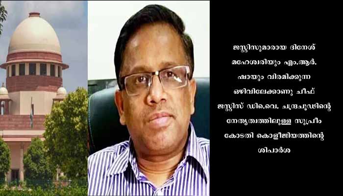 കൊച്ചി: മലയാളിയും സീനിയര്‍ അഭിഭാഷകനുമായ കെ.വി. വിശ്വനാഥിനെയും ആന്ധ്രാപ്രദേശ് ഹൈക്കോടതി ചീഫ് ജസ്റ്റിസ് പി.കെ. മിശ്രയെയും സുപ്രീം കോടതി ജഡ്ജി പദത്തിലേക്കു കൊളീജിയം കേന്ദ്രസര്‍ക്കാരിനോടു ശിപാര്‍ശചെയ്തു. ജസ്റ്റിസുമാരായ ദിനേശ് മഹേശ്വരിയും എം.ആര്‍. ഷായും വിരമിച്ചതിനെത്തുടര്‍ന്നു സുപ്രീം കോടതിയില്‍ രണ്ടു ജഡ്ജിമാരുടെ ഒഴിവുണ്ട്. ഈ ഒഴിവിലേക്കാണു ചീഫ് ജസ്റ്റിസ് ഡി.വൈ. ചന്ദ്രചൂഢിന്റെ നേതൃത്വത്തിലുള്ള സുപ്രീം കോടതി കൊളീജിയത്തിന്റെ ശിപാര്‍ശ.