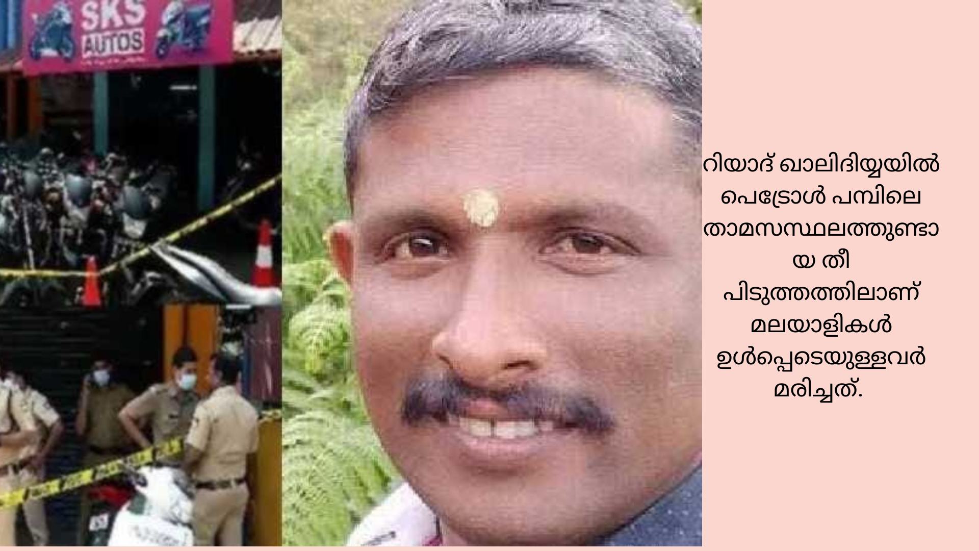 റിയാദ് ഖാലിദിയ്യയിൽ പെട്രോൾ പമ്പിലെ താമസസ്ഥലത്തുണ്ടായ തീ പിടുത്തത്തിലാണ് മലയാളികൾ ഉൾപ്പെടെയുള്ളവർ മരിച്ചത്. . പെട്രോൾ പമ്പിൽ പുതുതായി ജോലിക്കെത്തിയവരായിരുന്നു ഇവർ. ഷോർട്ട് സർക്യൂട്ട് ആണ് അപകട കാരണം.