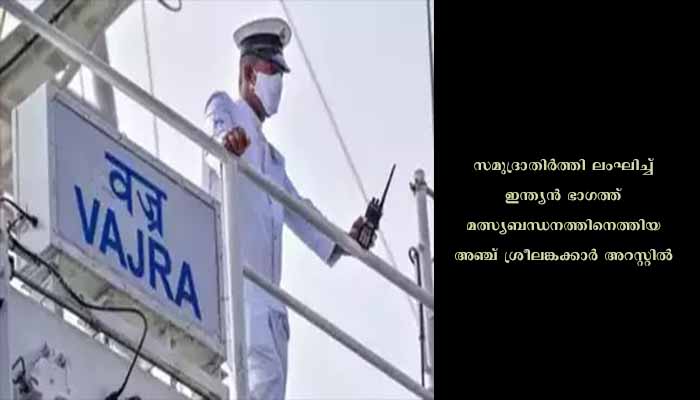 സമുദ്രാതിര്ത്തി ലംഘിച്ച് മത്സ്യബന്ധനം; അഞ്ച് ശ്രീലങ്കക്കാര് അറസ്റ്റില്