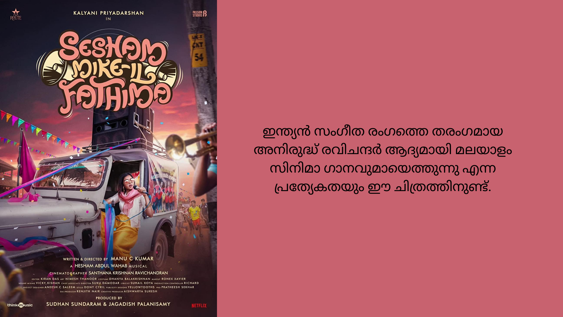 ഇന്ത്യൻ സംഗീത രംഗത്തെ തരംഗമായ അനിരുദ്ധ് രവിചന്ദര് ആദ്യമായി മലയാളം സിനിമാ ഗാനവുമായെത്തുന്നു എന്ന പ്രത്യേകതയും ഈ ചിത്രത്തിനുണ്ട്.