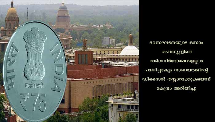 നാണയത്തിന്റെ ഒരു വശം അശോക സ്തംഭവും അതിന് താഴെയായി സത്യമേവ ജയതേ എന്നും ആലേഖനം ചെയ്തിരിക്കും. ഇടതുവശത്ത് ‘ഭാരത്’ എന്നത് ദേവനാഗരി ലിപിയിലും വലത് വശത്ത് ‘ഇന്ത്യ’ എന്ന് ഇംഗ്ലീഷിലുമുണ്ടാകും. നാണയത്തില് ‘രൂപ’ ചിഹ്നവും ലയണ് ക്യാപിറ്റലിന് താഴെ അന്താരാഷ്ട്ര അക്കങ്ങളില് ’75 ‘എന്ന മൂല്യവും രേഖപ്പെടുത്തും. മുകളിലെ ‘സന്സദ് സങ്കുല്’ എന്നും താഴെ ഇംഗ്ലീഷില് ‘പാര്ലമെന്റ് മന്ദിരം’ എന്നും എഴുതും.