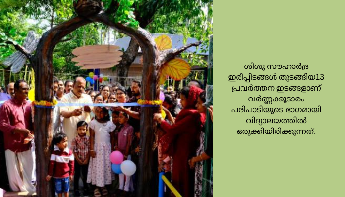 വെള്ളച്ചാട്ടത്തിന്റെ, മാതൃക, കളിവീട്, കളിയരങ്ങ്, കെ എസ് ആർടിസി ബസ് മാതൃക, അബാക്കസ്, വരച്ചു കളിച്ചു പഠിക്കാൻ വലിയ ക്യാൻവാസ്, അഭിനയിച്ചു രസിക്കാൻ ചെറിയ വേദിയും, സൗണ്ട്, മൈക്ക് എന്നീ സംവിധാനങ്ങൾ, അറിവ് നിർമ്മിക്കാൻ അറിവ് നിറഞ്ഞ ചിത്ര ചുമരുകൾ, ഡിജിറ്റൽ ക്ലാസ്സ്‌, തുടങ്ങി കുട്ടിയുടെ വിവിധ ശേഷികൾ വികസിപ്പിക്കാൻ ഉതകുന്ന തരത്തിലുള്ള സൗകര്യങ്ങളാണ് വിദ്യാലയത്തിൽ സജ്ജമാക്കിയിരിക്കുന്നത്. ഗുണമേന്മയുള്ളതും ശാസ്ത്രീയവുമായ പ്രീ സ്കൂൾ വിദ്യാഭ്യാസം കുഞ്ഞുങ്ങൾക്ക് നൽകുക എന്ന ലക്ഷ്യത്തോടെയാണ് സമഗ്ര ശിക്ഷ കേരളം വർണ്ണകൂടാരം എന്ന പരിപാടി നടപ്പാക്കുന്നത്. ഓരോ ഇടങ്ങളും കുട്ടിയുടെ ഭാവനയും, ചിന്തയും ഉണർത്തുന്ന തരത്തിലാണ് ഒരുക്കിയിരിക്കുന്നത്. അനുഭവിച്ചും അസ്വദിച്ചും സ്വയം പഠനാനുഭവം ഒരുക്കുവാനുള്ള സാധ്യതയാണ് ഇതിലൂടെ പൊതു വിദ്യാലയങ്ങളിലെ പ്രീ പ്രൈമറി കുഞ്ഞുങ്ങൾക്ക് ലഭിക്കുന്നത്.