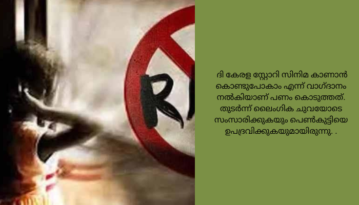 ‘ദി കേരള സ്റ്റോറി’ സിനിമ കാണിക്കാമെന്ന് പറഞ്ഞ് കൂട്ടിക്കൊണ്ടുപോയി പ്രായപൂർത്തിയാകാത്ത പെൺകുട്ടിയെ പീഡിപ്പിച്ചു. മഹാരാഷ്ട്രയിലെ ഏർവാടയിലാണ് സംഭവം. പീഡനത്തിനിരയായ പതിനാലുകാരിയുടെ മാതാവ് നൽകിയ പരാതിയിൽ 29കാരനായ സണ്ണി ഗുപ്തയ്‌ക്കെതിരെ പൊലീസ് കേസെടുത്തു.2023 മെയ് 17 നായിരുന്നു സംഭവം.