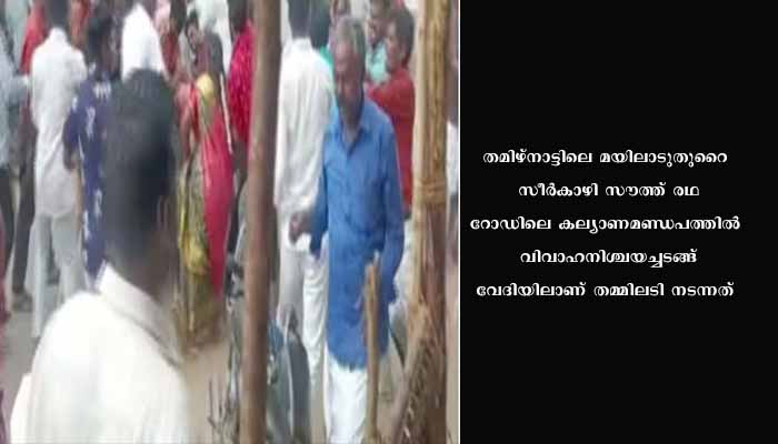 ഭക്ഷണശാലയ്ക്കുള്ളിലെ മേശയും കസേരയുമെല്ലാം പരസ്പരം വലിച്ചെറിഞ്ഞ് അടിവച്ചടിവച്ച് ഓഡിറ്റോറിയത്തിന് പുറത്തും കൂട്ടത്തല്ലായി. തുടർന്ന് സീർകാഴി പൊലീസ് സ്ഥലത്തെത്തി ഇരുവിഭാഗത്തേയും പിന്തിരിപ്പിക്കുകയായിരുന്നു. കല്യാണമണ്ഡപത്തിലെ കൂട്ടത്തല്ലിന്റെ ദൃശ്യം സാമൂഹിക മാധ്യമങ്ങളിലൂടെ പ്രചരിക്കുകയാണ്. ഇരുഭാഗത്തും പരാതിയില്ലാത്തതിനാൽ പൊലീസ് കേസെടുത്തിട്ടില്ലെന്നാണ് വിവരം. പപ്പടം കിട്ടാത്തതിന്റെ പേരിൽ കല്യാണ സദ്യക്കിടെകൂട്ടത്തല്ലുണ്ടായ വാർത്ത അടുത്തിടെ കേരളത്തിൽ വന്നിരുന്നു.