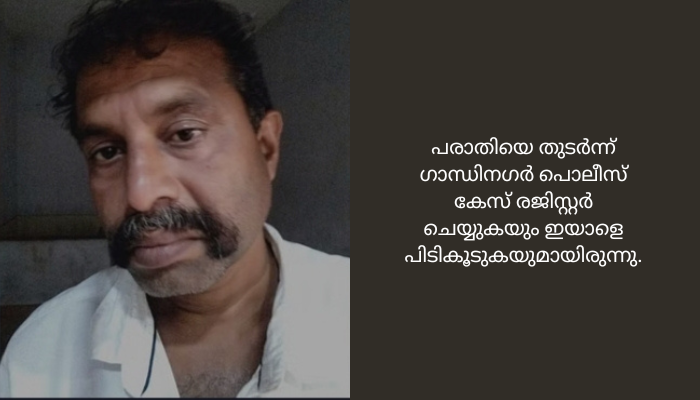 ഗാന്ധിനഗർ സ്റ്റേഷൻ എസ്.എച്ച്.ഓ കെ. ഷിജി, എസ്.ഐ സുധി. കെ.സത്യപാലൻ, വിജയപ്രസാദ്, സി.പി.ഓ സോണി എന്നിവർ ചേർന്നാണ് ഇയാളെ അറസ്റ്റ് ചെയ്തത്. ഇയാൾക്ക് കോട്ടയം വെസ്റ്റ് സ്റ്റേഷനിൽ ക്രിമിനൽ കേസുകൾ നിലവിലുണ്ട്. ഇയാളെ കോടതിയിൽ ഹാജരാക്കി.