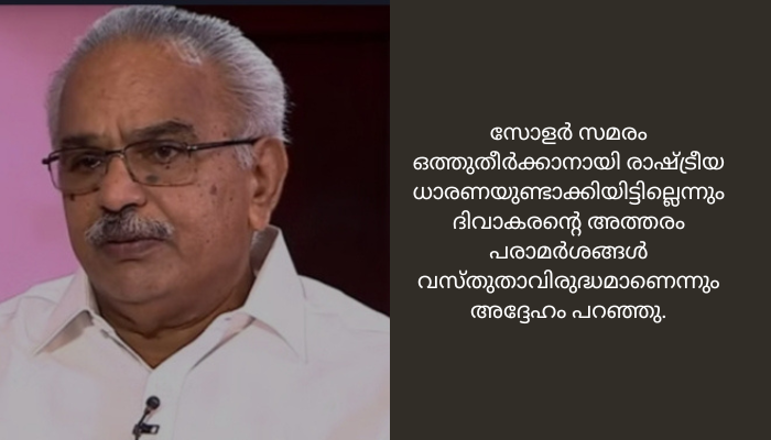 വാർത്താ സമ്മേളനത്തിൽ ദിവാകരൻ ഉന്നയിച്ച കാര്യങ്ങളൊന്നും ആത്മകഥയിലില്ല. ഇതിന്റെ ഉത്തരവാദിത്വം അദ്ദേഹത്തിനു മാത്രമാണ്. സോളാർ കമ്മീഷൻ റിപ്പോർട്ട് വായിച്ചു. പലകാര്യങ്ങളും അംഗീകരിക്കാനാവില്ല. ആവശ്യമുള്ളതും ഇല്ലാത്തതുമായ കാര്യങ്ങൾ പരാമർശിക്കുന്നുണ്ടെന്നും കാനം വ്യക്തമാക്കി.