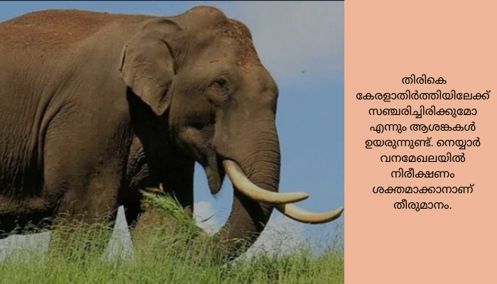 ഇതിനു പിന്നാലെ വ്യാഴാഴ്ച വൈകിട്ടോടെയാണ് റേഡിയോ കോളറിൽ നിന്നും സിഗ്നൽ നഷ്ടമായത്. നിലവിൽ കോതയാറിൽ നിന്ന് നെയ്യാർ വനമേഖലയിലേക്ക് 130 കിലോമീറ്റർ ദൂരമോയുള്ളൂ. അതിനാൽ തന്നെ ആന തിരികെ കേരളാതിർത്തിയിലേക്ക് സഞ്ചരിച്ചിരിക്കുമോ എന്നും ആശങ്കകൾ ഉയരുന്നുണ്ട്. നെയ്യാർ വനമേഖലയിൽ നിരീക്ഷണം ശക്തമാക്കാനാണ് തീരുമാനം.
