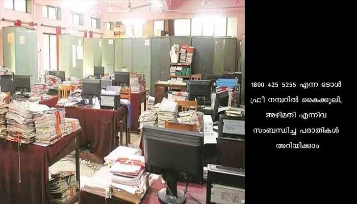 തിരുവനന്തപുരം: റവന്യൂ വകുപ്പിലെ അഴിമതി തടയുന്നതിന് ഭാഗമായി പൊതുജനങ്ങള്ക്ക് പരാതി അറിയിക്കാന് ടോള്ഫ്രീ നമ്പര്. 1800 425 5255 എന്ന ടോള് ഫ്രീ നമ്പറില് കൈക്കൂലി, അഴിമതി എന്നിവ സംബന്ധിച്ച പരാതികള് അറിയിക്കാം. പ്രവൃത്തി ദിനങ്ങളില് രാവിലെ 10 മണി മുതല് വൈകിട്ട് അഞ്ചു വരെ വിളിക്കാം. പേരും വിലാസവും വെളിപ്പെടുത്താതെ വിവരങ്ങള് കൈമാറാവുന്നതാണ്.