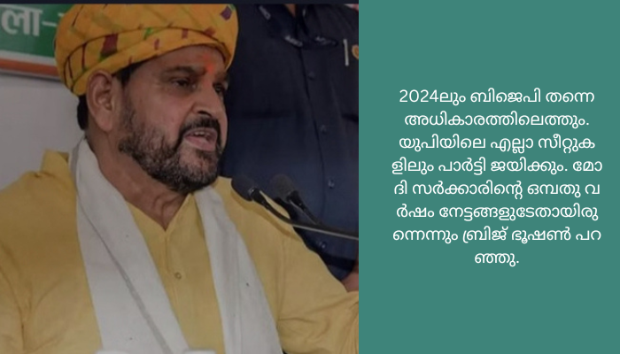 2024ലും ബിജെപി തന്നെ അധികാരത്തിലെത്തും. യുപിയിലെ എല്ലാ സീറ്റുകളിലും പാർട്ടി ജയിക്കും. മോദി സർക്കാരിന്റെ ഒമ്പതു വർഷം നേട്ടങ്ങളുടേതായിരുന്നെന്നും ബ്രിജ് ഭൂഷൺ പറഞ്ഞു.