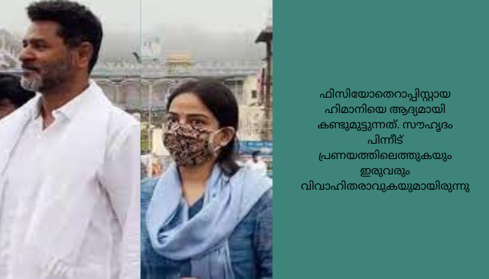 പുറം വേദനയുമായി ബന്ധപ്പെട്ട് ആശുപത്രിയില് എത്തിയപ്പോഴാണ് പ്രഭുദേവ ഫിസിയോതെറാപ്പിസ്റ്റായ ഹിമാനിയെ ആദ്യമായി കണ്ടുമുട്ടുന്നത്. സൗഹൃദം പിന്നീട് പ്രണയത്തിലെത്തുകയും ഇരുവരും വിവാഹിതരാവുകയുമായിരുന്നു.