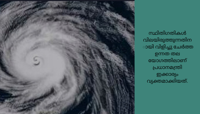 ന്യൂഡൽഹി: ബിപോർജോയ് അതി തീവ്ര ചുഴലിക്കാറ്റ് ബാധിക്കാവുന്ന പ്രദേശങ്ങളിൽ നിന്നുള്ളവരെ സുരക്ഷിതമായി മാറ്റിപ്പാർപ്പിക്കണമെന്ന് നിർദേശിച്ച് പ്രധാനമന്ത്രി നരേന്ദ്ര മോദി. ചുഴലിക്കാറ്റ് ഗുജറാത്ത് തീരപ്രദേശങ്ങളിലൂടെ കടന്നു പോകുമെന്ന് കാലാവസ്ഥാ വകുപ്പ് മുന്നറിയിപ്പ് നൽകിയിട്ടുണ്ട്. സ്ഥിതിഗതികൾ വിലയിരുത്തുന്നതിനായി വിളിച്ചു ചേർത്ത ഉന്നത തല യോഗത്തിലാണ് പ്രധാനമന്ത്രി ഇക്കാര്യം വ്യക്തമാക്കിയത്.