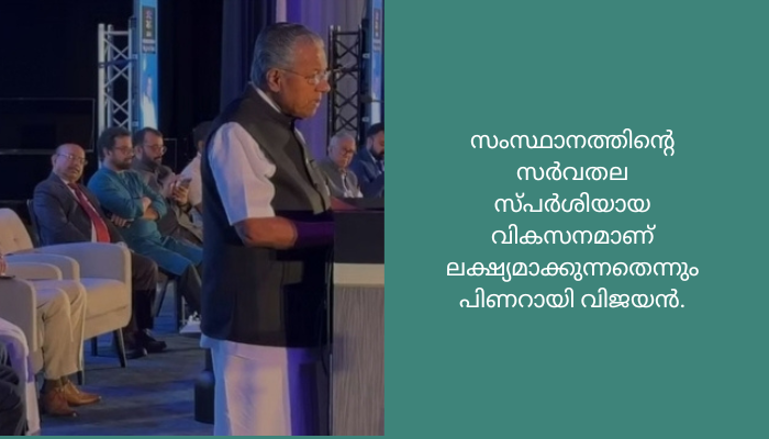 ഇന്റർനെറ്റ് സേവനം ജനങ്ങളുടെ അവകാശമാക്കിയ കേരളം, കെഫോൺ വഴി അതു പ്രയോഗത്തിൽ വരുത്തുകയും ചെയ്തു. സംസ്ഥാനത്തിന്റെ സർവതല സ്പർശിയായ വികസനമാണ് ലക്ഷ്യമാക്കുന്നതെന്നും പിണറായി വിജയൻ.