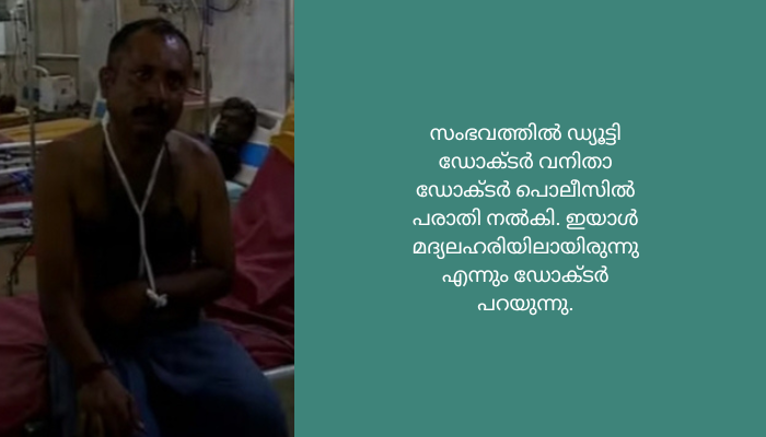 സംഭവത്തിൽ ഡ്യൂട്ടി ഡോക്‌ടർ‌ വനിതാ ഡോക്‌ടർ‌ പൊലീസിൽ പരാതി നൽകി. ഇയാൾ മദ്യലഹരിയിലായിരുന്നു എന്നും ഡോക്‌ടർ‌ പറയുന്നു.
